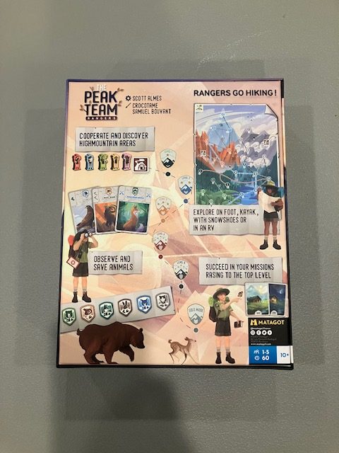 It’s also odd that the BGG entry lists the name of the game as The Peak Team, but the cover clearly seems to show The Peak Team Rangers? Shrug?