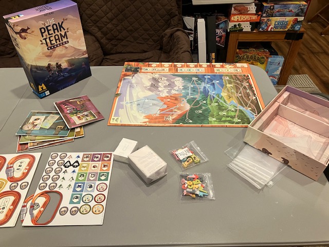 I am surprised how poorly the cooperative game of The Peak Team went for my group; so much so, that I can’t really recommend the cooperative game. The dysfunctional communication rules and artificial and restrictive constraints just frustrated my group. I can’t really call this a full review, because we never even got past level 1. But it’s hard to move on to later levels when none of my friends thought the cooperative game was fun; they didn’t want to play again! My group was pretty unanimous with 5/10 for the cooperative game.