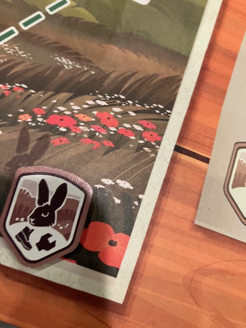 Another place: For quite some time, I was under the impression that you could discard an animal to get it because the rules said “if you are on a location in the same region”. My original reading of this was regions like in Pandemic Iberia, so that at (for example, see above) Location 6 I could get EITHER the deer or the lynx! Nope! It’s the color that makes that determination (and it is in the rulebook) … even though 6 is in BOTH the regions. I think this an artificial constraint; couldn’t it have been BOTH? Give me more choice, don’t take choice away!!!!