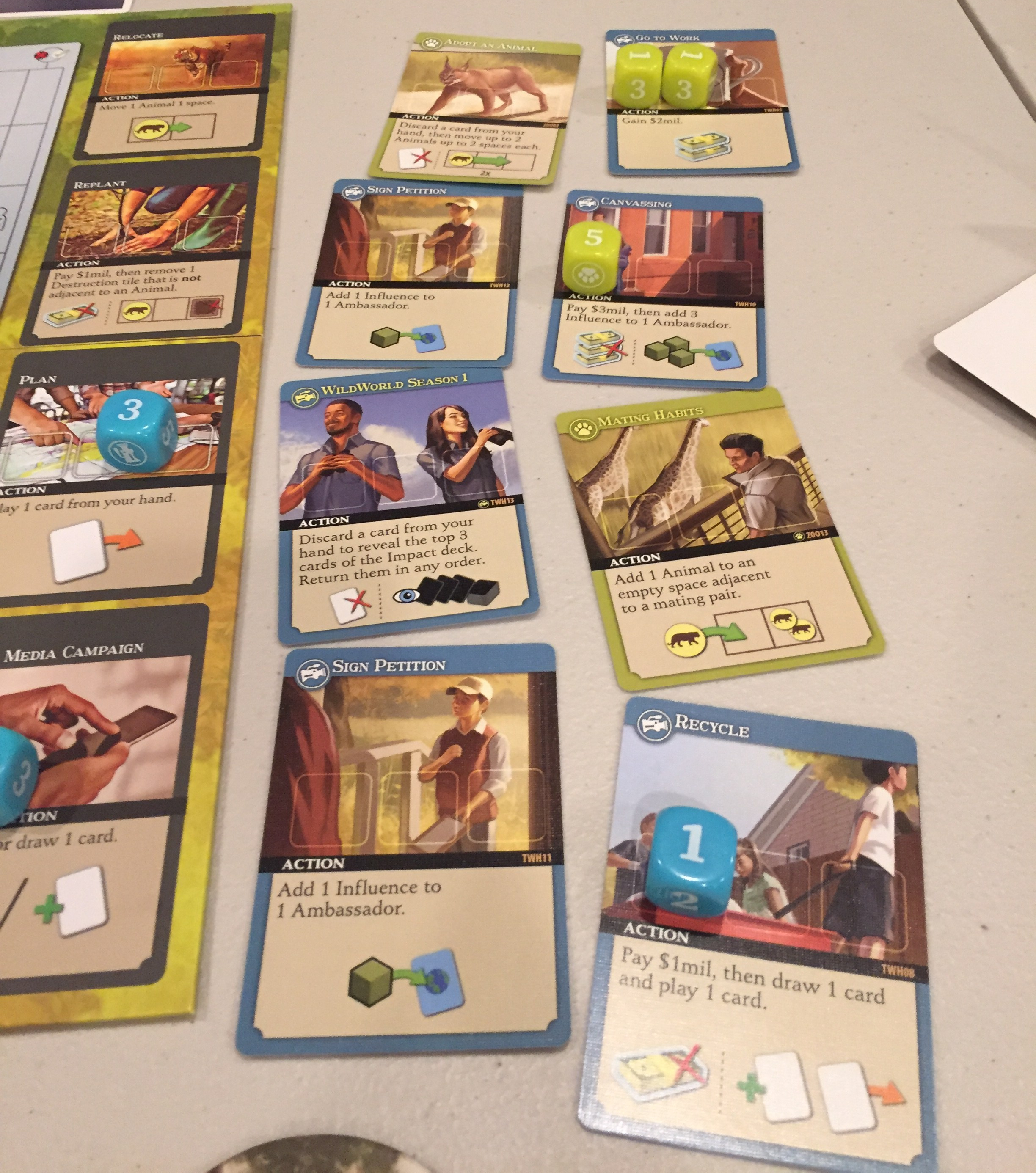 A bunch of actions available