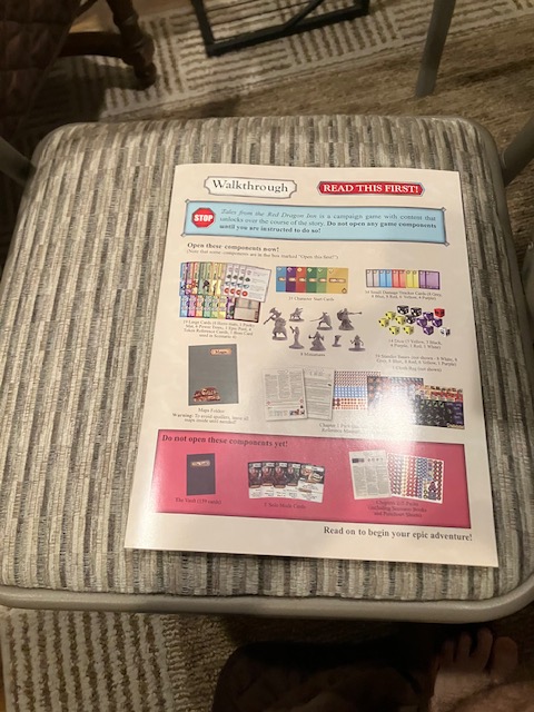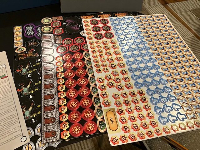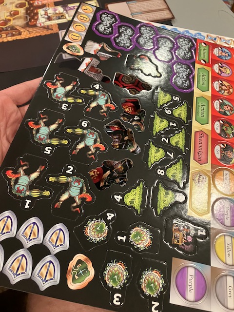 The first part of the game unboxing was building the dice tower: this consumed about 20 minutes! The directions are pretty good, but it was annoying. Unfortunately, this was a little foreshadowing for the game itself.