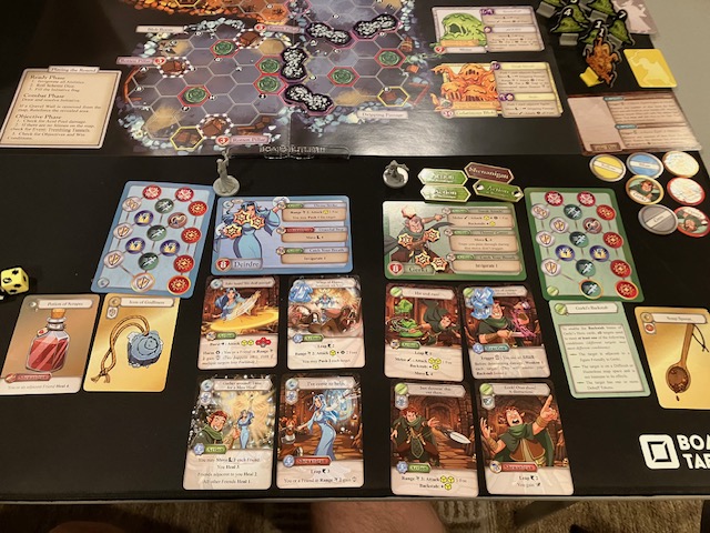 The game was fun, but we saw more of the randomness emerge It was also frustrating that sometimes players couldn’t do anything. The muster action can only be done on certain locations IF you have friendship cards. The Prepare action can only be done on a Haven. So, if you didn’t have friendship or weren’t on a Haven (because you were out fighting), sometimes turns felt a little anti-climactic (as you couldn’t do much).